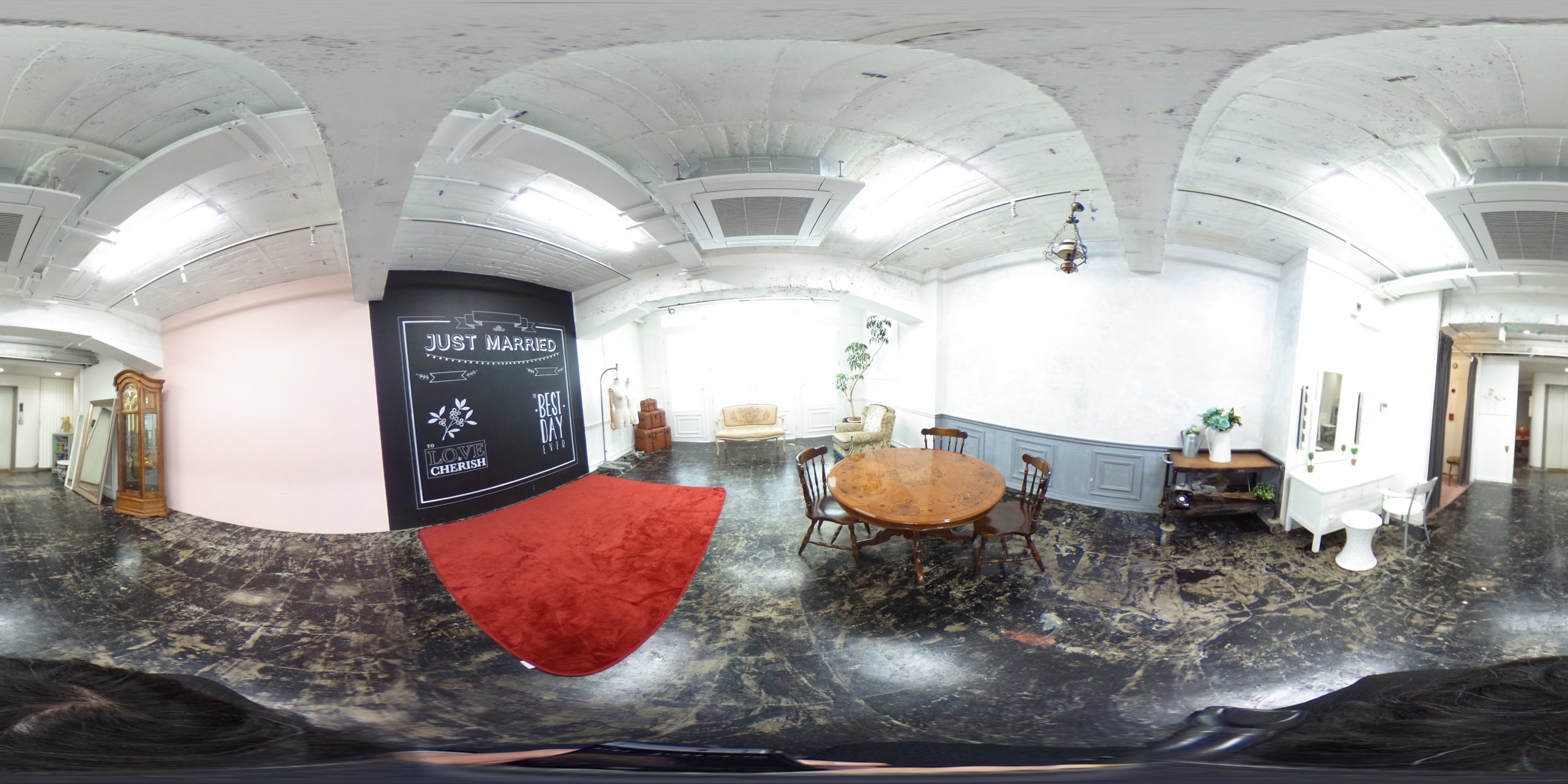 全体的にアンティークを基調にした3スタ。自然光がたっぷり入る窓辺のブースや、ウェディングにぴったりなブラックボード、シンプルなアンティークピンクのブースなど、5種類のブースをご用意しました。